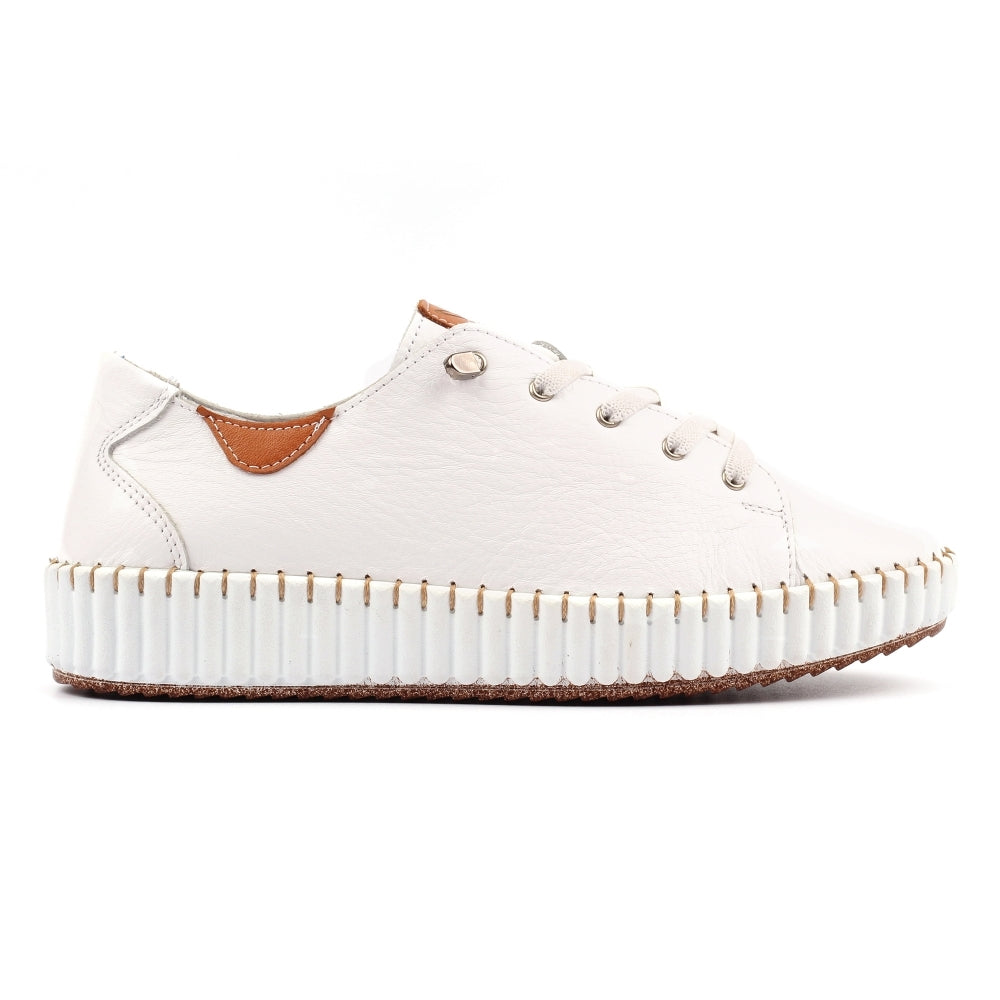 Brighten your step with the Faith Leather shoe. Crafted in white leather with tan accents, this playful design is finished with stitched detailing and a chunky ribbed sole for a modern edge. Comfortable, lightweight, and versatile, it’s the perfect way to add a pop of colour to casual looks while keeping all-day wear in mind.